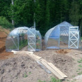 Zasnova rastlinjakov je zasnovana tako, da preprečuje visoke snežne obremenitve in neugodne vremenske razmere. Struktura je popolnoma prekrita z visokokakovostnim polikarbonatom z UV-filtrom.